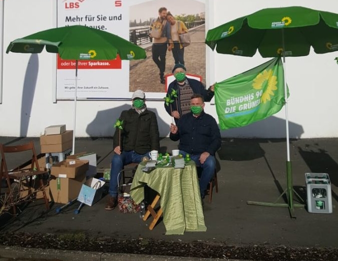 Der Grüne Wahlstand wird zwischenzeitlich mit prominenten Vertretern aus Kreis und Kommunalpolitik besetzt sein,